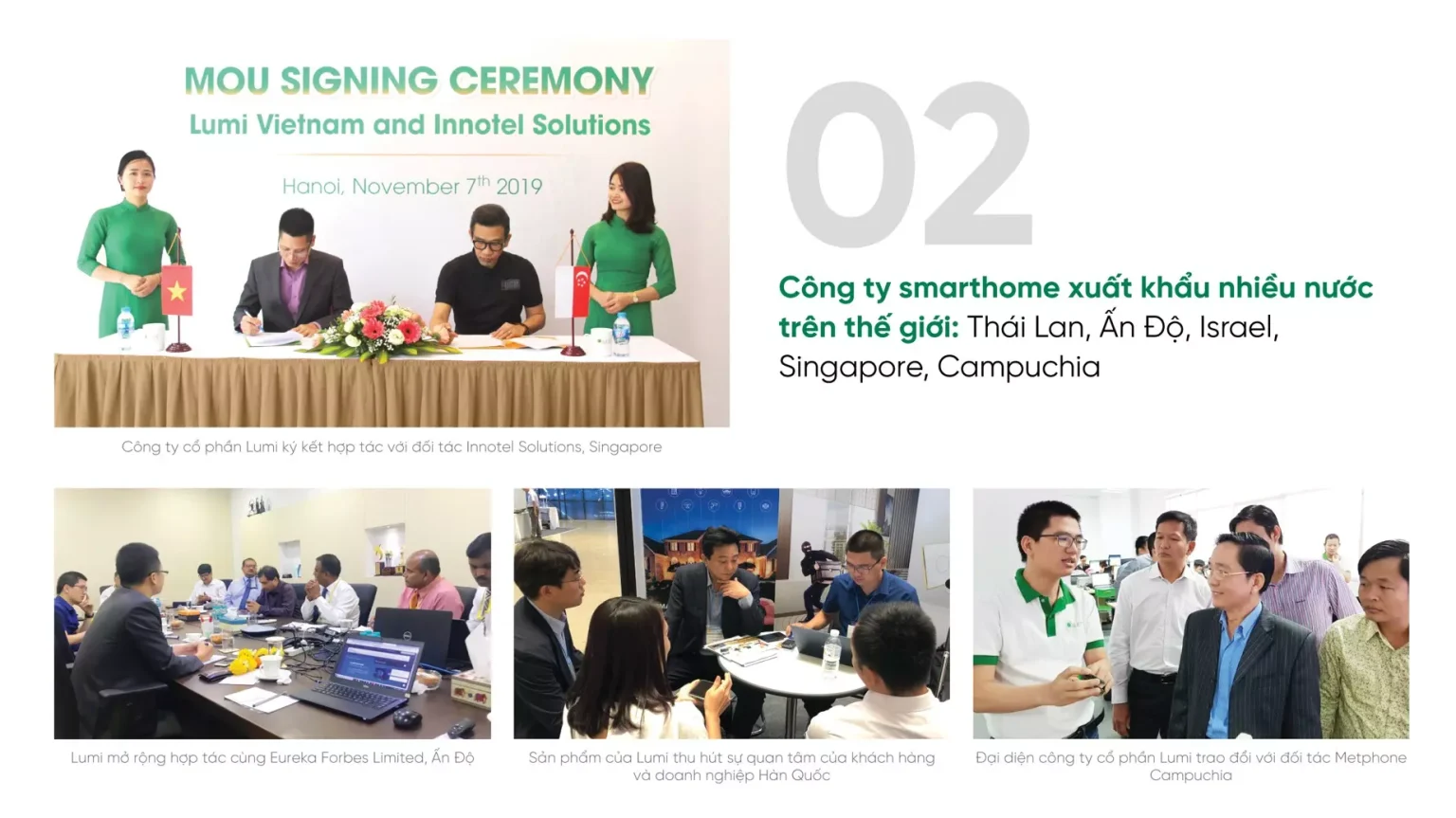 Nhà thông minh Lumi sở hữu chứng chỉ quốc tế CE và QUACERT…, thành công xuất khẩu sản phẩm tới 9 quốc gia trên thế giới như Thái Lan, Singapore, Ấn Độ, Au